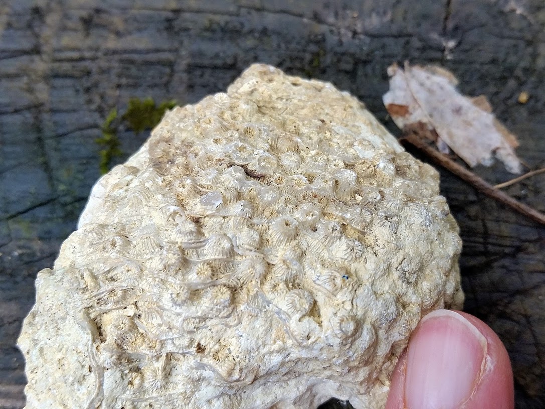 The rock to the right of the face just to the side of the rough path should be examined carefully. How does it compare with the rest of the rock in the face? This rock is made up of varying sized blocks and represents the debris that fell down the side of the coral reef. If the rough path up the face is climbed, the junction between the reef and the bed that was laid down above it can be examined. The reef with patches of debris extends for about 40m at this level but is not easily accessible. UNLESS MATERIAL IS REQUIRED FOR A DEFINITE EDUCATIONAL PURPOSE, PLEASE DO NOT REMOVE FROM THIS SITE. |